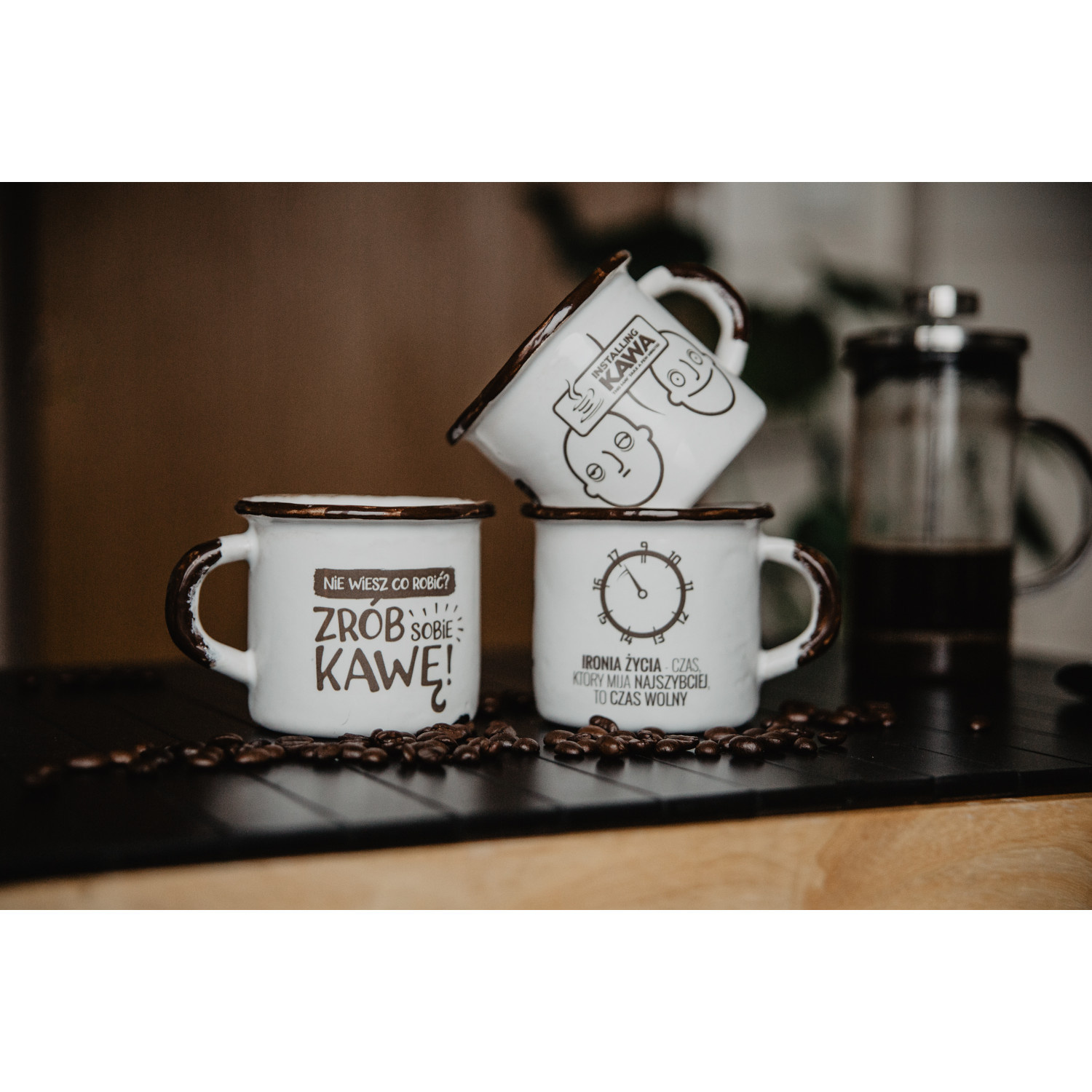 Może piłeś z niejednego kubka, ale na pewno nie z brodatego! Łap za nasz ceramiczny, ręcznie robiony kubek, który stylizowany jest na metalowy kubek emaliowany.